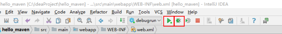 如上图红框选中的两个按钮,左侧是正常启动,右侧是 debug 启动。