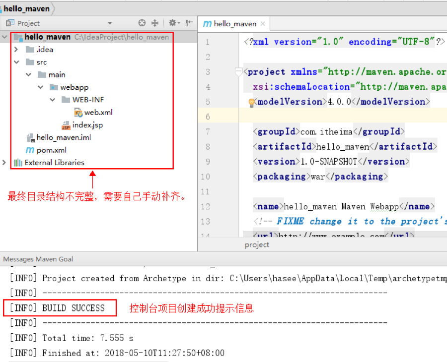 直接打开 hello_maven 工程的 pom.xml 文件,再添加坐标