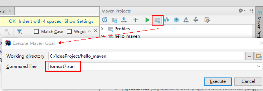 也可以直接点击如图按钮,手动输入 tomc7:run 命令运行项目