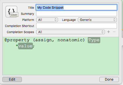 XCode - 代码片段 Code Snippets