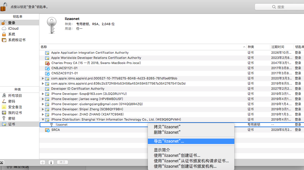 双击下载好的cer证书,然后导出对应的p12文件(dev/dis)